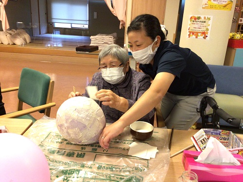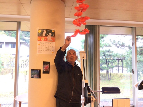 (写真左上注目です!デイサービス特製のミラーボールです!)
